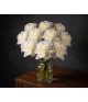 Radiating poise and purity, this exquisite bouquet of soft white blooms and lush foliage brings a calming, simple yet modern touch to any living space. Featuring beautiful roses, chrysanthemums, germini, alstroemeria and lily, this white floral arrangement is perfect for sympathy or condolences, new baby celebrations, engagements or even new home. Vase not included.