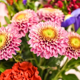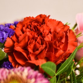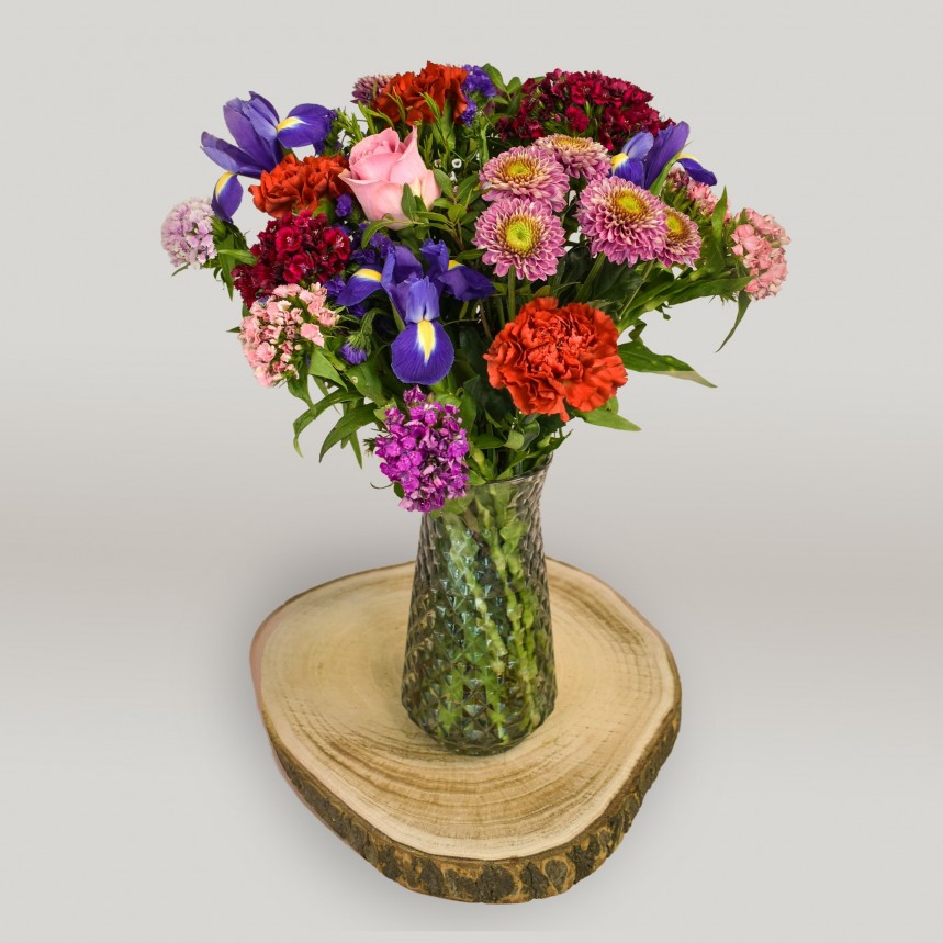 Standard - total stems 17. Chrysanthemum x2, Iris x3, Statice x3, Carnation x3, Rose x1, Pistache x2, Alstroemeria x3